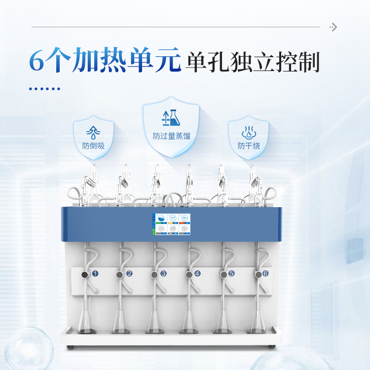2.多通道独立控制:3个加热单元各自独立,配备防倒吸、防过量蒸馏及防干烧保护。